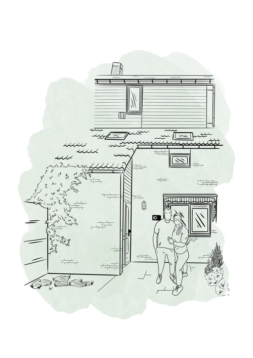 Geef jouw thuis een bijzondere plek aan de muur met een persoonlijke huisillustratie in minimalistische line art. Perfect als herinnering aan je eerste huis, verhuiscadeau of gewoon omdat je van je thuis houdt.