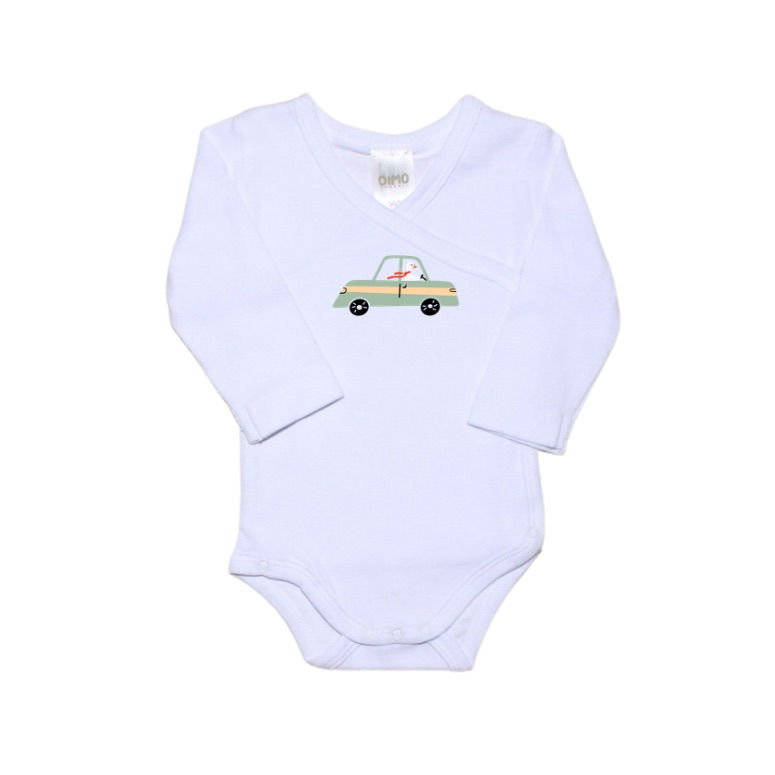 Op de voorkant een vrolijk autootje met de naam van jouw baby – een uniek detail dat elk exemplaar persoonlijk maakt.